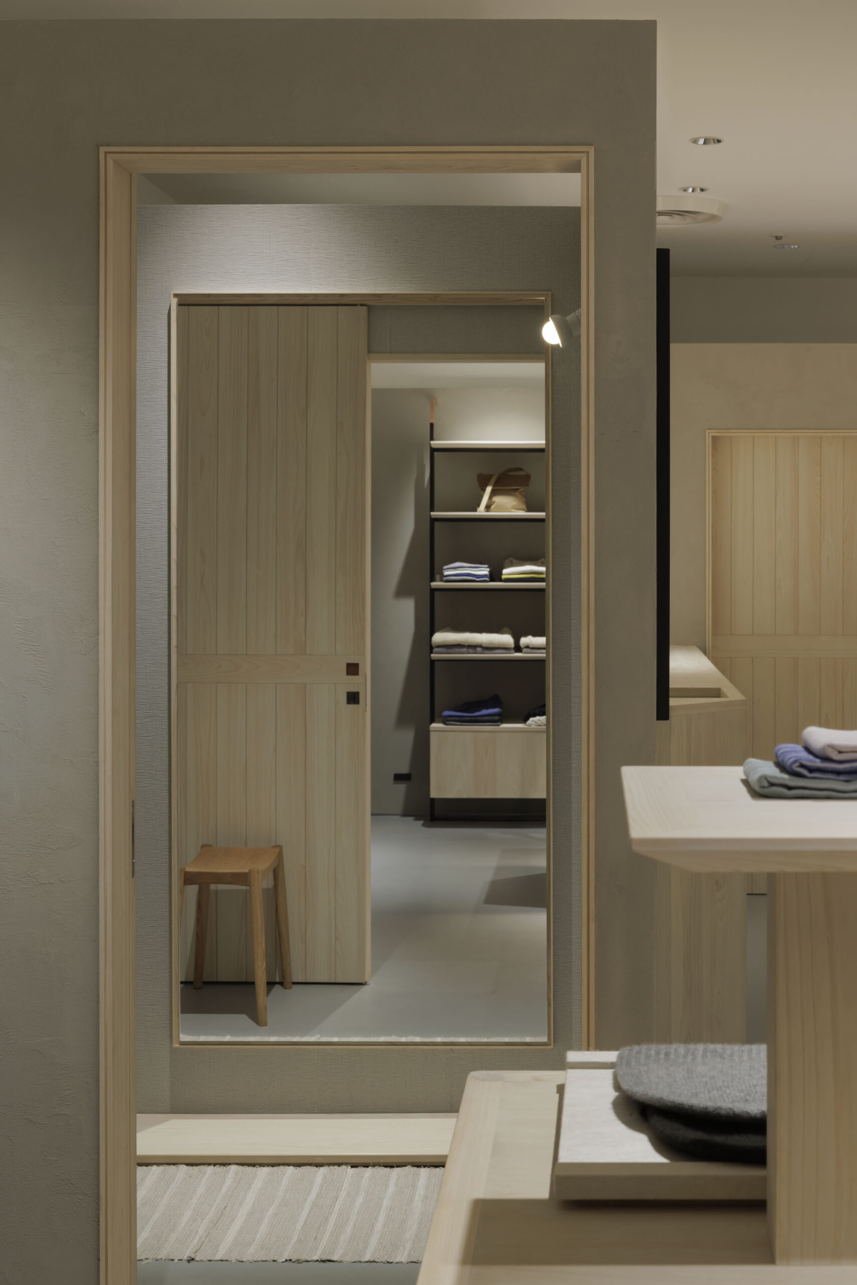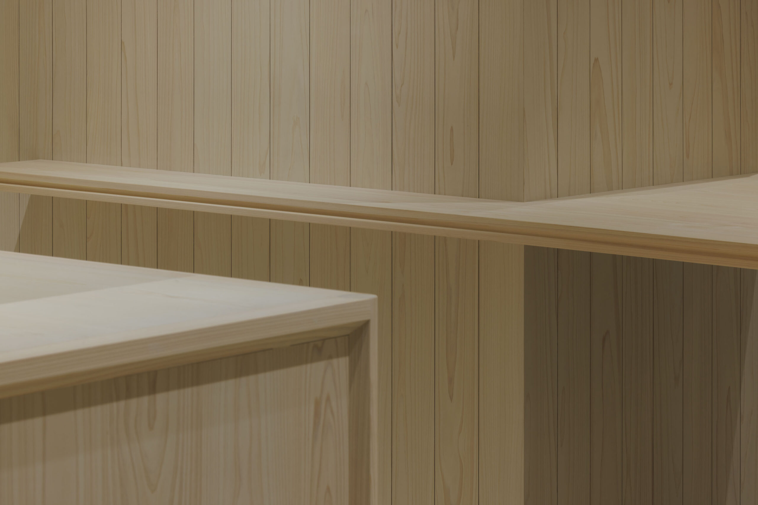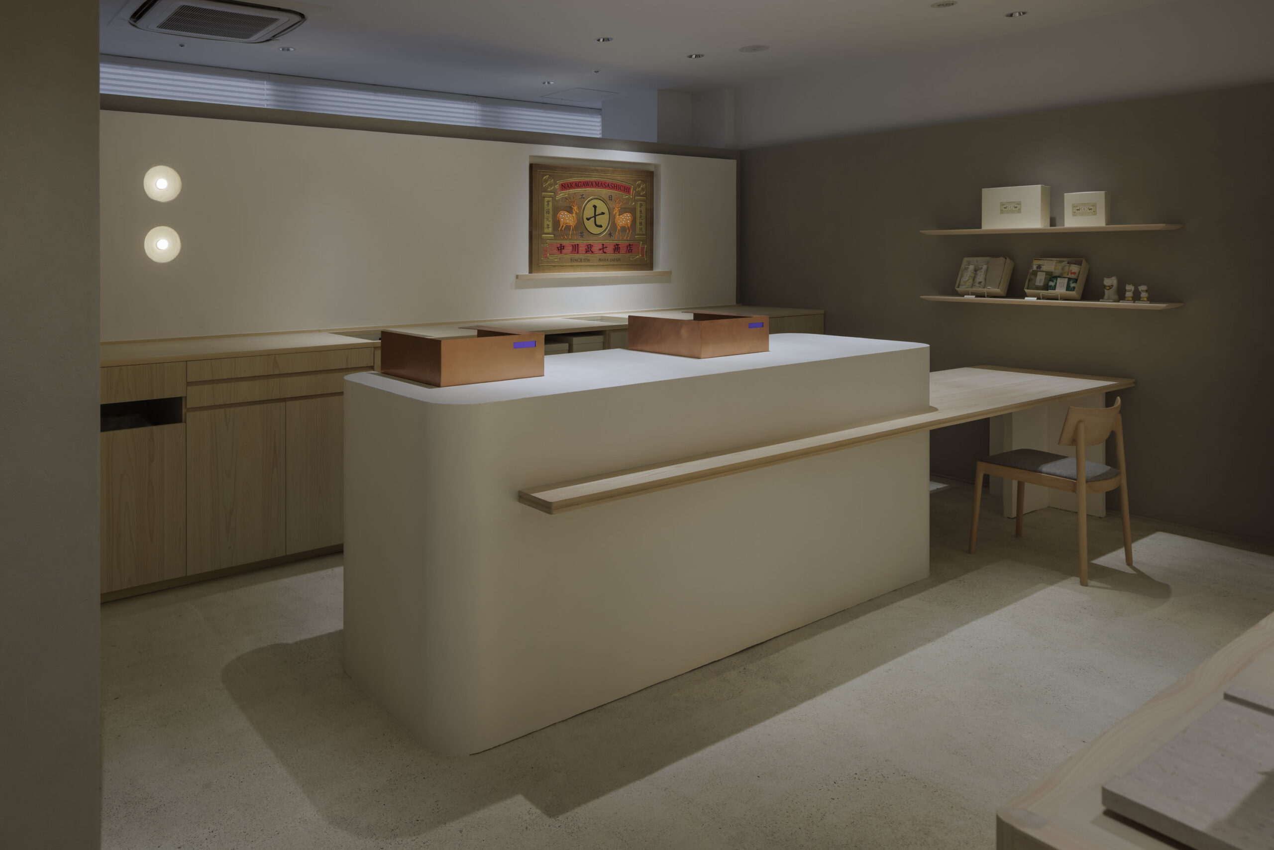 内装は創業の地、奈良の吉野桧をベースに空間を構成している。
